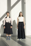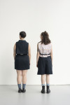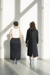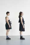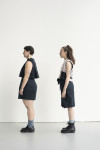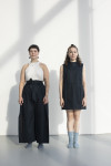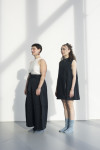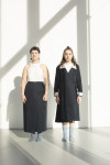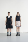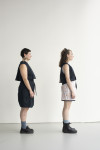 By employing the practice of removing, adding, or relocating seams the focus on certain areas on the body is dissuaded. This makes a size adjustment less obvious while allowing the garment to look proportional on various bodies. I also uti- lize excess fabric often disguised in folds to inconspicuously add more room for fluctuations - this consequentially offers an opportunity to create a repositioning moment permitting a size adjustable feature.