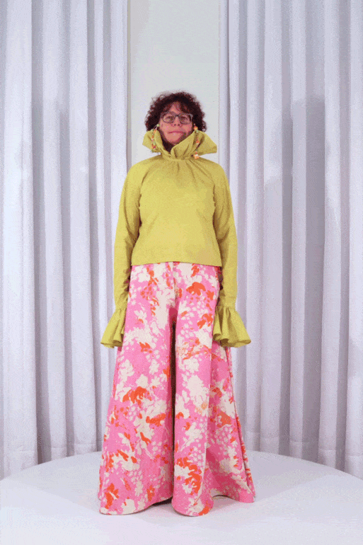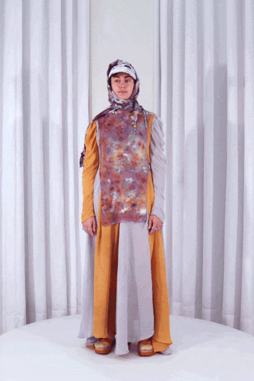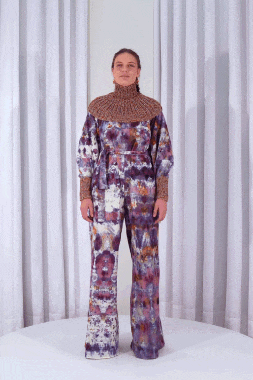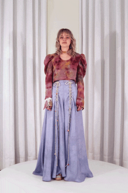 I have created a garden and grown plants for coloring. In doing so, I have preserved their beauty in fabric and made them last. I only use natural fibers and I have been inspired by organic shapes, Art Nouveau and my own image research for the designs. The examination of the cutting technique was just as important to me as my deliberately chosen cast. Central to my work and embodied by my cast is the cycle of life that I experience in the garden.