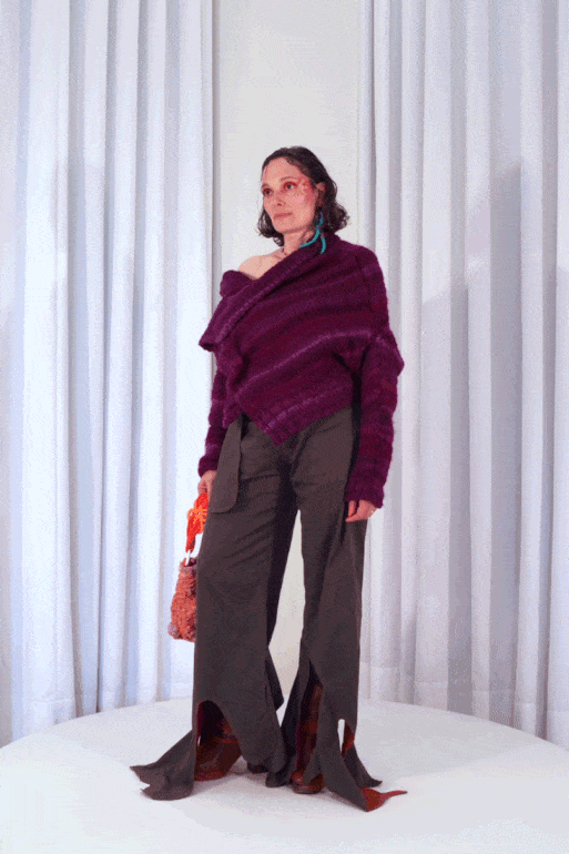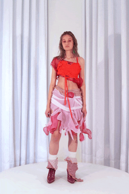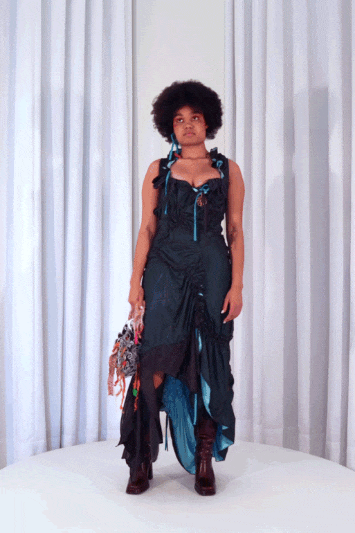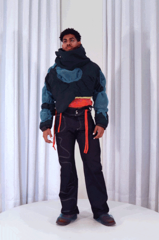 My collection revolves around my perception of nature and my relationship to it. Using fragments of prints and patterns I designed as the key components. Rather than using actual natural materials , I'm working with material manipulations and material collaborations to imitate natural surfaces. These manipulations repeat and enhance themselves within the four looks, wich represent the four seasons. Just like nature throughout the year, my looks change but still resemble within each other. The purpose being to convey a feeling of growth and progression towards a world where humans treat nature as a privilege rather than a source that can be exploited. Most of my used materials are bought second hand.