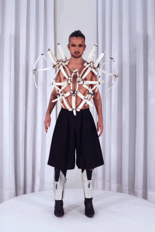 The aftermath of faith remains a constant inspiration. Fear, initially existential and daunting, is now explored as a catalyst for strength, transforming into unmatched resilience. Wearable objects as an extention of the body turn into a display of power and proclaim some sort of victory.
