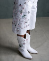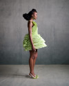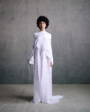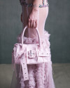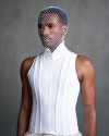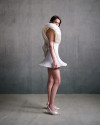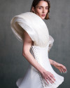 Defined by corsetry and pleating, the silhouettes oscillate between rigidity and fluidity.