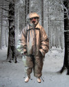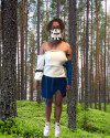 Die Grundlage meiner Arbeit basiert auf der Überlegung, wie Kleidung in einer zukünftigen dystopischen Welt, geprägt von natürlichen und menschgemachten Ka-tastrophen, Schutz bieten kann. Schutz ist dabei in ei-nem erweiterten Sinn zu verstehen. Es geht nicht nur um Schutz vor Witterung, Kälte und Hitze sondern genauso vor Strahlungen, Überwachung und Seuchen. Die Masken schützen vor Ansteckungen mit Viren und verbergen gle-ichzeitig die Identitäten der TrägerInnen. Alle Looks sind mit Kompass und Feuerstein ausgerüstet. Damit sollte das nackte Überleben in einer postzivilisatorischen Welt gewährleistet sein.