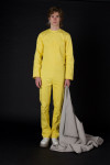 Diese Arbeit soll den Menschen anregen, sich Gedanken über Rollenbilder zu machen. Meine Referenz in dieser Auseinandersetzung ist die Bekleidung für Neugeborene und tätigkeitsorientierte Kleidung im Alltag. Bei beiden Bekleidungstypen dominiert die Funktionalität und das Erfüllunen von Bedürfnissen. Entscheidungen bezüglich Form und Verschlüssen werden geschlechtsneutral getroffen. Davon inspiriert, habe ich mit diesen bestehenden Codes spielerisch Menschen eingekleidet. Durch die Collabortaion mit Laura Schwyter, Textildesignerin und Laura Desch, Schmuckdesignerin entstanden neue Flächen. Darin spielte die Verschmelzung von Accessoire und Kleidungsstück eine zentrale Rolle.