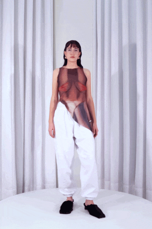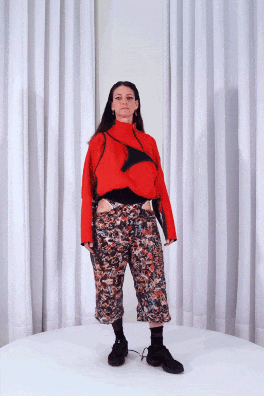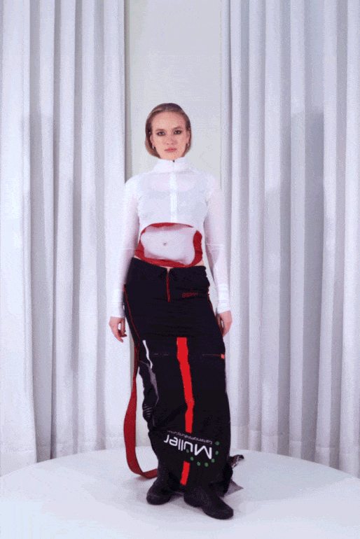 I take pictures with my camera to compile visual material on how bodies are dressed, how I dress my own and how we move in them. This visual research is the impulse for my design practice. Not least, my work deals with image-making, how images relate to the body and how the manipulation of material can produce an imagery effect.