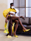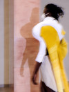 Using styling on my own body and adopting poses with art-historical female connotations, I examined my body feeling and these newly created shapes and forms. Wrapped in fabric, exchanging volumes, revealing a different silhouette depending on the view. This resulted in photographs, which I subsequently painted over intuitively. I investigated the tension that opens up when a pose is translated as part of the silhouette and thus a piece of clothing takes its place. The blurring of boundaries between body and design is underlined by merging different materials and fabrics.