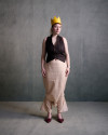 In my collection I reflect on my fascination with old movie classics like Alfred Hitchcock thrillers and how their romantic storytelling, including idealized cinematic role models, creates this tension with the lived indiviDual reality. There I take a closer look at everyday behavior paying particular attention to moments of disruption, inSecurity, and imPerfection. My work embraces this “oFF-ness”, using it as a strength and translating it into unConventional garments. I believe that clothing is deeply connected to the performative act which the-refore shapes my silhouettes regarding movement, posture, and expression, allowing me to amplify, reDirect, or exPose bodily actions through form and construction.