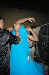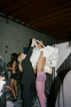 Die Aura einer Halle im Umbau provoziert performatives Agieren. Erneuerung wird zum Gegenvorschlag, zur Umwälzung gesellschaftlicher Normen. Absperrgitter eröffnen Perspektiven, verweisen auf andere Wege. Die Baustelle zeigt den Ort eines Übergangs, den Schauplatz möglicher Leben. Umbauten und Umzüge sind der zentrale Rhythmus. Inszenierungen von Mode sind per se situativ und werden hier unvermittelt erlebbar. Mit dem Live-Act stellen wir uns dieser Brüchigkeit, stellen sie aus.