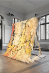Stefanie Salzmann’s practice is closely linked to the story of her preferred material, the wool of her family’s Blacknose sheep. She explores the materiality of wool and uses it to craft sculptures and tapestries. Disrupted gardens of pleasure is a series of works that revolve around gardens; the garden is present metaphorically, as motifs distorted through the artistic process and in the botanical dyes. The textiles are insulating felted tapestries, like Jardin Oscillant, in which woollen ropes, developed in collaboration with a Swiss rope maker, weave into a hammock. They ingrain the slowness of the rhythms and the attention paid to the growth of nature. The works strike a balance between art and design and seek out sites in public spaces, galleries, fashion weeks, or, most recently, a cultural centre. Stefanie often produces them site-specifically and invites people to follow the performative process.