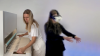 The video installation Don’t Steal our Sunlight deconstructs and reconstructs the creative process, showing the possibility of creating a new narrative by emphasising the consequences of climate change. • The melting of glaciers and desertification are performed through two different traditional textile production techniques for the creation of unique upcycled garments. The body of the performer becomes both medium and tool: on one screen, the ice sculptures containing textile dye melt directly on the body and the garments, made of discarded and screen-printed jersey. On the other screen, the painting is done by airbrush with natural powder pigments on leather scraps assembled with a special crochet technique. • The two videos were filmed in a disused cement factory in Ticino, a symbol of the exploitation of the Earth’s resources and human intervention in the cycles of nature. • The special effects in the video are data taken from the Intergovernmental Panel on Climate Change, translated into disruptive visual elements addressing the trends of expansion of deserts and the shrinking of polar caps from now until 2050.