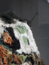 Stefanie Salzmann’s textiles begin with the wool of her family’s Blacknose sheep from the Swiss canton of Valais, a byproduct of traditional sheep farming. She investigates the materiality of wool and uses it to craft felted tapestries and sculptures. The textile works celebrate the possibilities of wool and explore the insulating and protective aspects of the fibres, both physically and mentally. For her recent textiles, homegrown tinctorial plants such as coreopsis, marigold and rosemary, together with walnut husks harvested from the family trees, mix with traditional dye plants like indigo and madder. Stefanie derives inspiration from colours and the material itself and uses dyed fibres to paint tactile textures. The textile creations become part of her art installations and serve as tools to open a space for the discourse on the connection between culture, the environment, and the meaning and rituals of the making process.