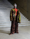 The expression of the looks is strengthened by these created textiles, especially in the design elements and surfaces. However, my style is meant to be equally functional, timeless, genderless and fresh in every dimension. The looks have a wide silhouette and generous cut, rely on heavily accented tops and bottoms, and play with the relation of symmetry to asymmetry. To give my fabrics a resemblance to volcanic explosions and volcanic rocks, I worked with bright and bold colors.