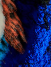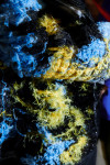 The volcanoes in Indonesia were the inspiration for these works. I was interested in transforming the effects of the eruptions, especially the colorfulness and surface textures of the lava into my fabrics. As to achieve a sustainable implementation, I developed a processing technique that leaves very little environmentally harmful residue and allows for a more ecological and fair value creation.